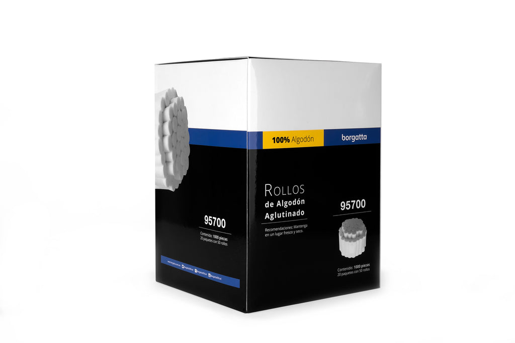 Rollos de algodón aglutinado, 100% virgen para aislamiento relativo, de gran suavidad y absorbencia. Se adaptan gentil y suavemente a cualquier contorno bucal o lingual. Contiene: 20 paquetes con 50