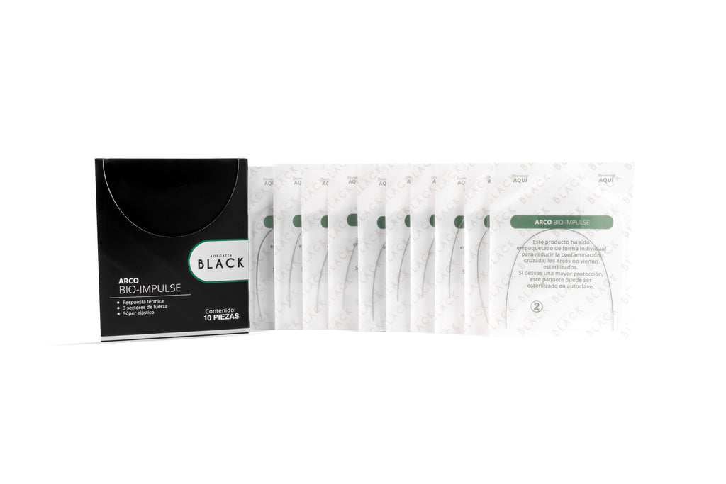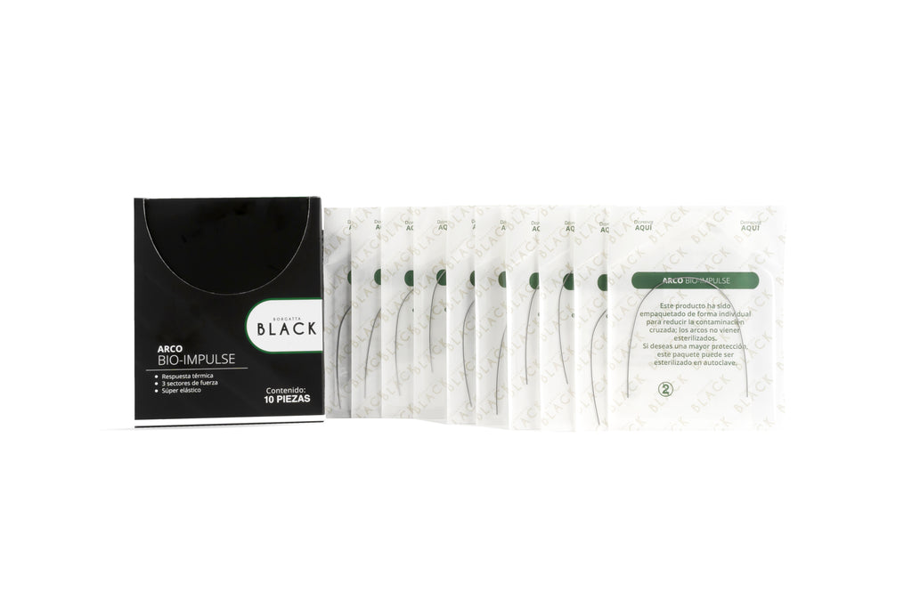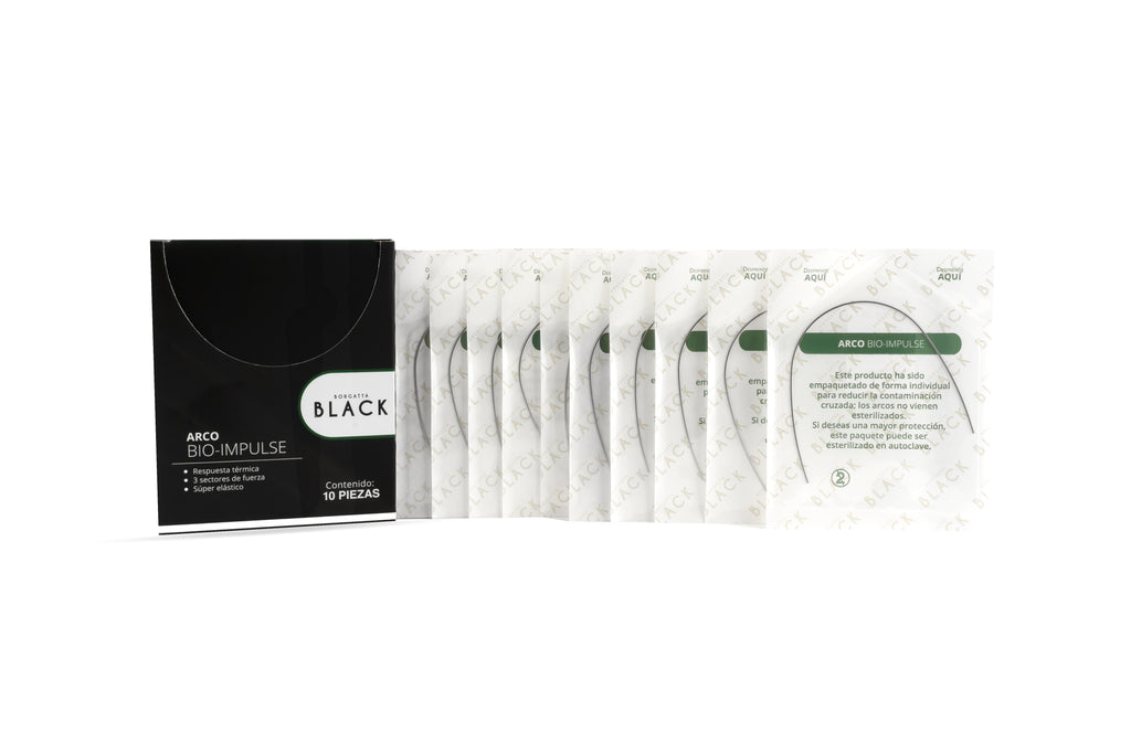 Arco programado para ofrecer 3 fuerzas diferentes, son constantes y compatibles con la biomecánica oral (ligero para anteriores, media para premolares y fuerte para molares). *Nota: Enfríese antes de manipular.*