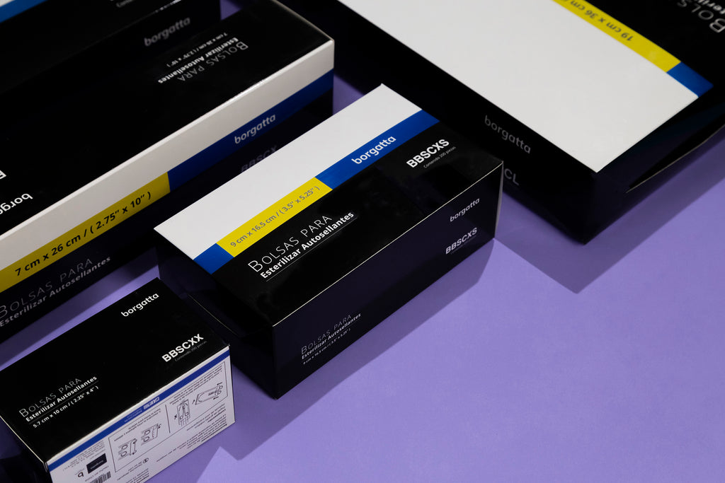 Sellado de máxima seguridad en las periferias y en las esquinas, papel grado médico de mayor grosor y banda adhesiva de autosellado. Aseguran el instrumental para una correcta esterilización en autoclave y con indicadores de procesos.