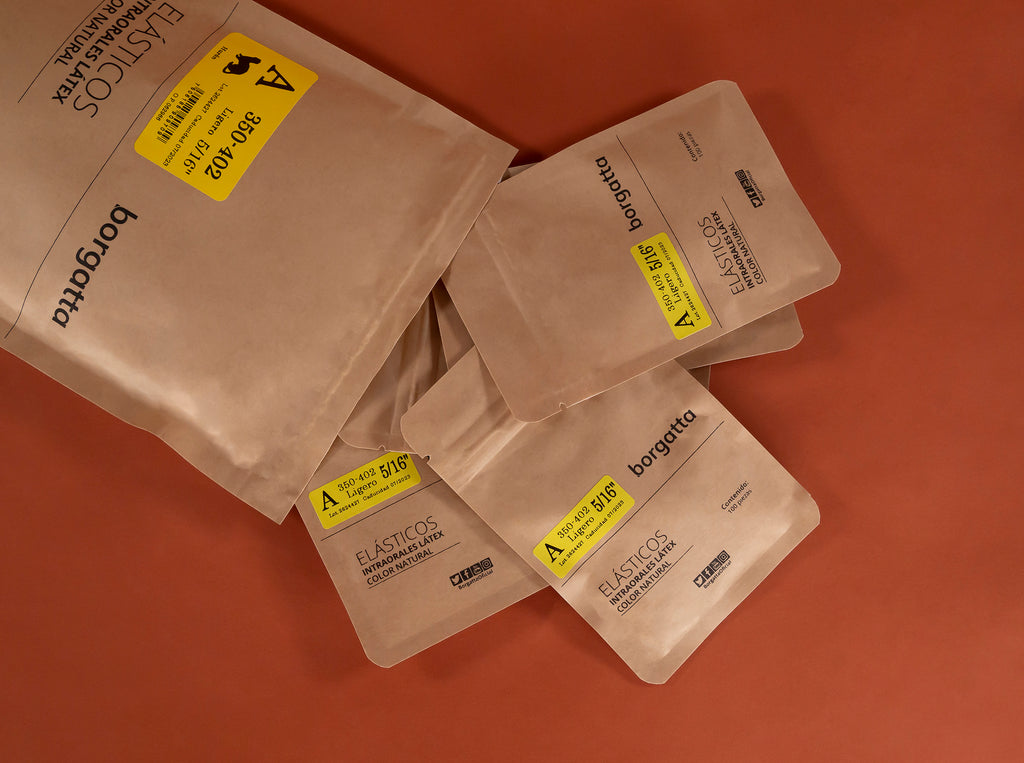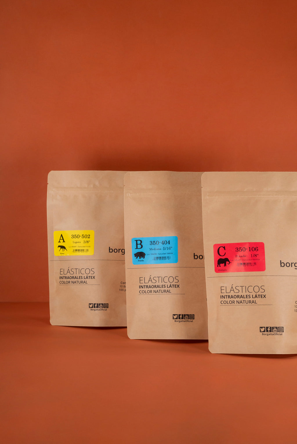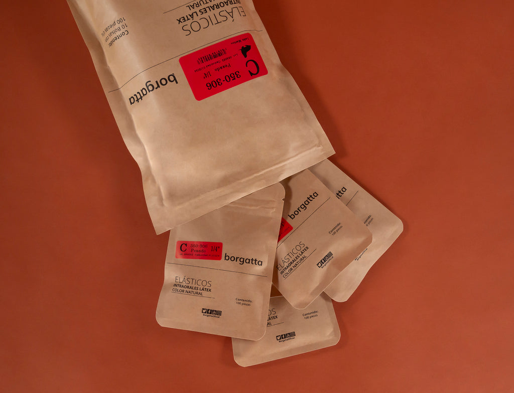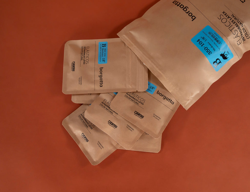 Elásticos intraorales en látex con un agradable aroma a menta para brindar una sensación de frescura durante su colocación. Empaque ecológico, bolsa máster con 10 bolsitas con 100 piezas cada una.