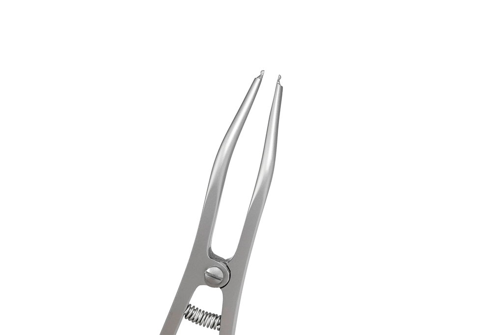 Instrumento manual para estirar y colocar modulos elásticos con un solo movimiento.