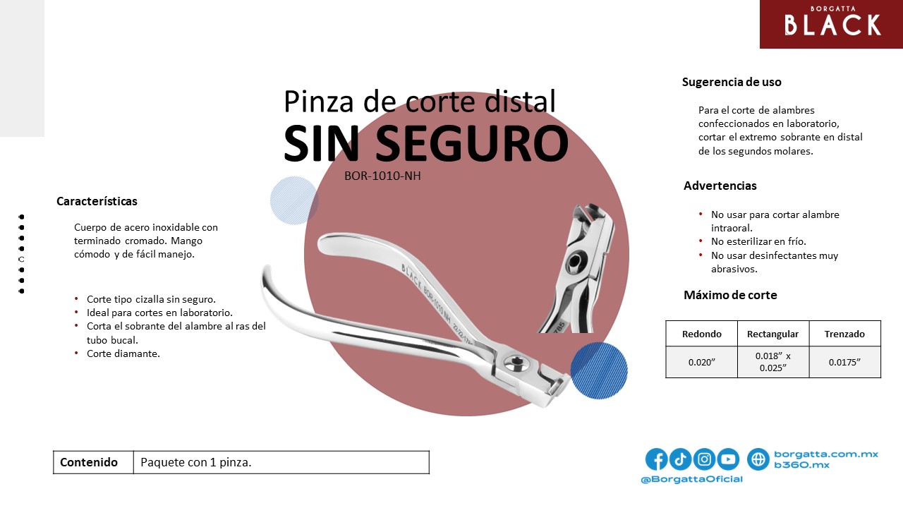 Para alambre duro redondo de hasta .020”, alambre rectangular de hasta .018” x .025” y alambre trenzado redondo de hasta .0175”.