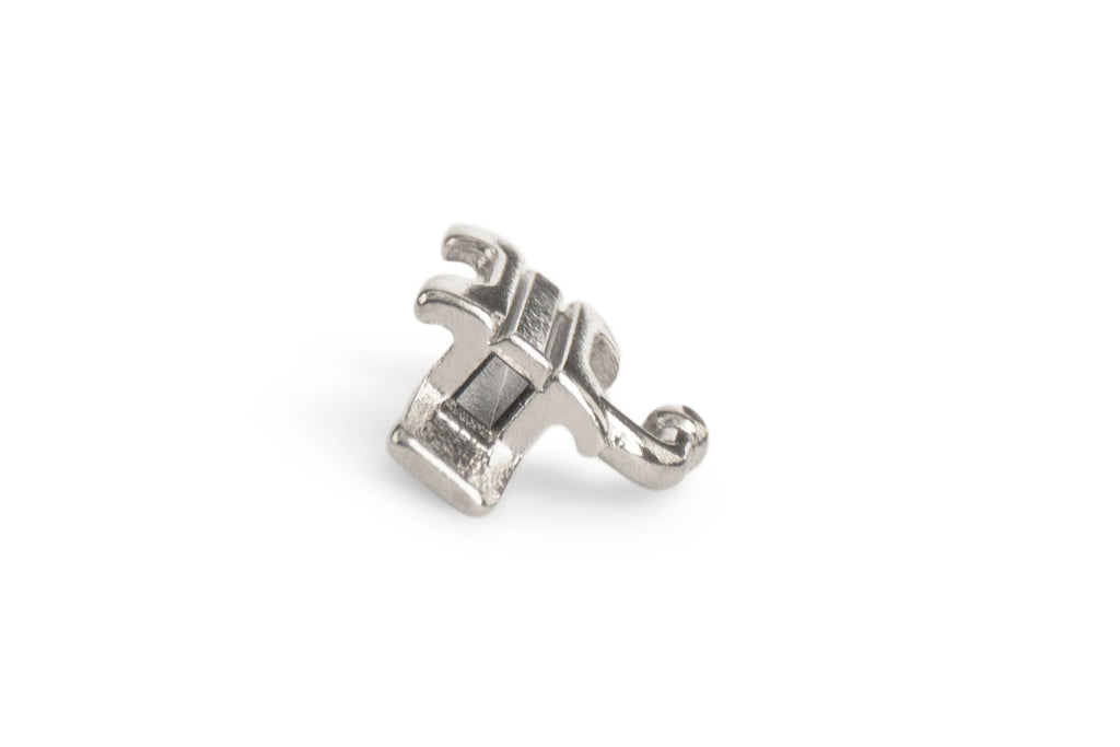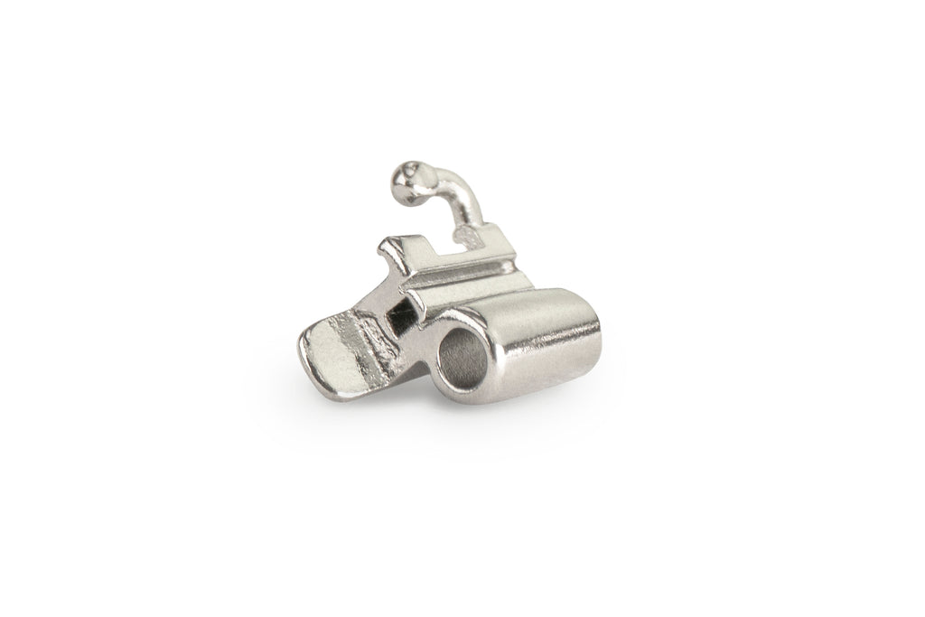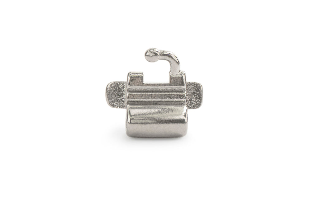 Base anatómica, contornos suavizados y gancho en bola para brindar más comodidad en boca. Base con malla 80 y slot: .022” Permite soldar a banda.